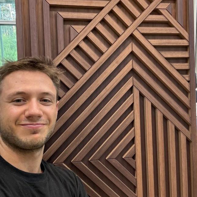 Iewan is a contemporary wood artist specializing in geometric wood wall art. He creates meticulously intricate pieces in small batches. Iewan's work is inspired by the interplay of natural wood and rythmic geometric patterns.